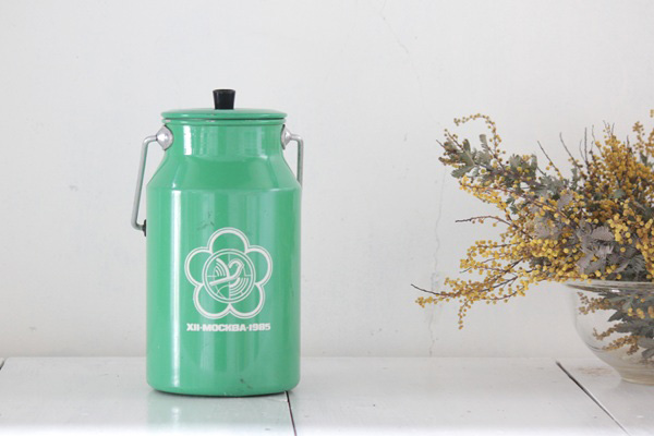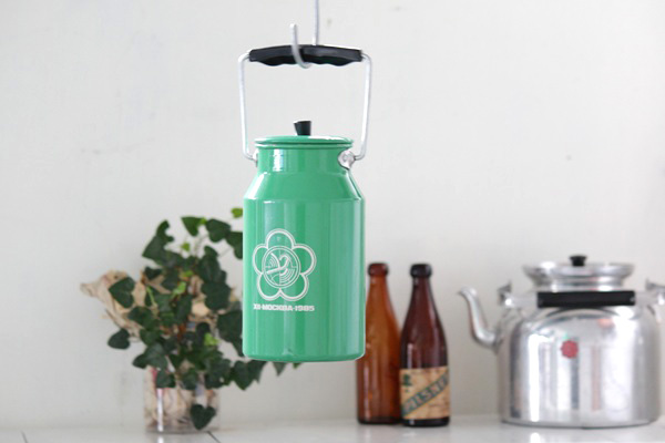 1985年にロシアのモスクワで開催された平和の祭典「第12回世界青年学生フェスティバル」の時に 作られた記念グッズのミルク缶です。