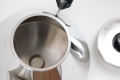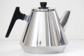 シュッとしたフォルムに 形状にあわせたストレートの持ち手は 親指が掛けやすいように上部はカーブを描いて、注ぎ口も垂れにくいように ちょっとシェープに工夫がされています。そしてなんといってもカッコいいフォルムは 使わないときに棚にあるだけで なんとなく楽しくなりますね。