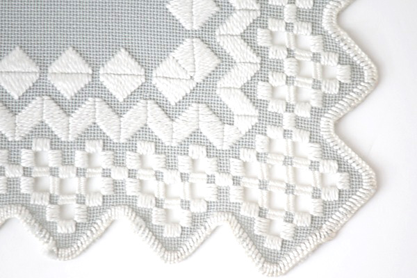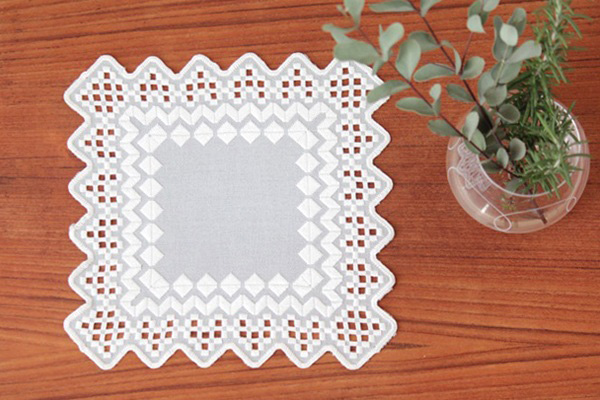 北欧伝統的な刺繍技法、ハーダンガー刺繍(ノルウェーHardanger地方発祥)で作られたテーブルトップです。