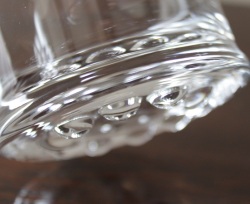 光にかざすと側面にうすく擦りキズや裏底に擦りキズがあります。その他製造時レベルの小さな気泡はありますが いずれも見ため・ご利用にもまったく問題なく とても綺麗なコンディションです。