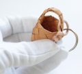 本当に可愛くて愛らしい小さなカゴのキーリング、小さいほど器用に丁寧に作らないといけないから、手間隙かかる作品です。