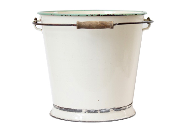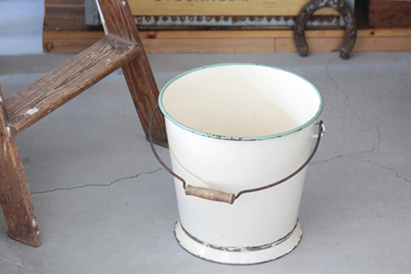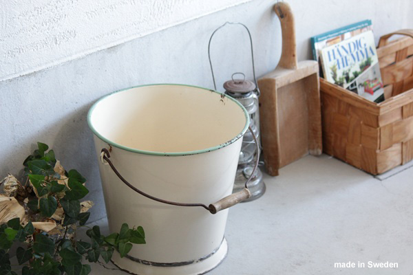 こちらはスウェーデンのKockumsコクムスで作られた、ホーロー製の大きなバケツです。柔らかく温かみのあるアンティークなベージュがとても可愛らしく インテリアにも◎