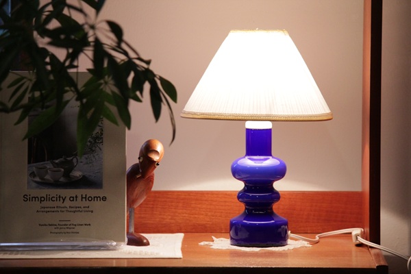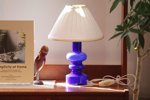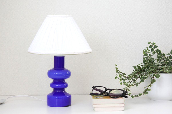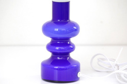 すごく綺麗な濃いブルーのガラスランプは 小ぶりで扱いやすい卓上サイズ、照明ランプとしてのご利用はもちろん、ガラス作品・オブジェとして棚に置いてあるだけで 素敵なインテリアになります♪