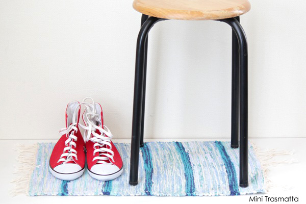 北欧の伝統的裂き織物のマット、Trasmattaトラースマッタと呼ばれています。シーツや洋服、カーテンなど さまざまな使用しなくなった布を裂いて織り直して敷物ラグに仕上げていきます。 キッチンや玄関での使用が一般的ですが お気に入りの家具や椅子の下に敷いても◎