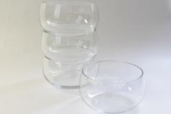 こちらはフィンランドを代表するガラスデザイナーのひとり、Nanny Still(ナニー・スティル1926-2009年)によってデザインされたガラスボウル。もとはシュガーボウルとして作られましたが、程よい大きさでサラダやデザートにピッタリ!柔らかく綺麗なシェイプで とっても素敵です。