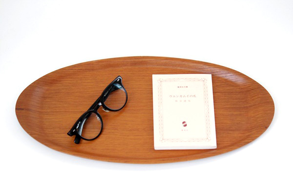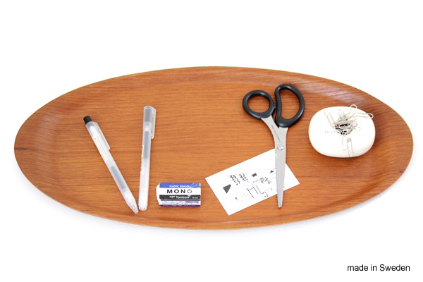 こちらはスウェーデン製のプライウッドトレイ、楕円形の横長トレーです。チーク材の木目が綺麗で使わない時は 置物や草花を飾って◎