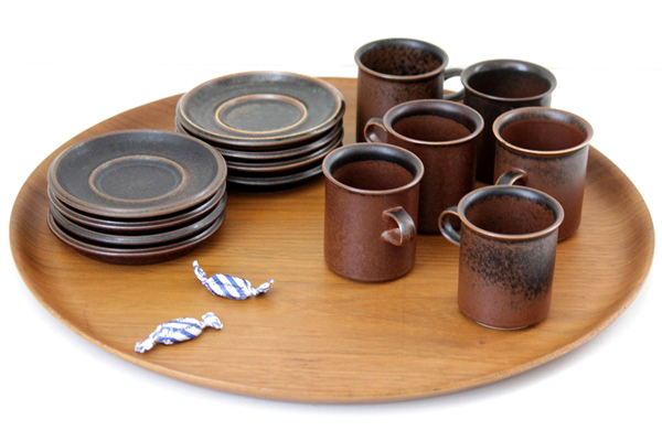 こちらはスウェーデン製のプライウッドトレイ、大きな円型です。大型のトレーはマグやタンブラーで12~15個ほど のせることが出来るサイズで ヴィンテージ市場では なかなか見つからない大きさです。