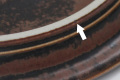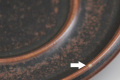 矢印部分、ソーサー裏ふちに施釉ムラにより小さな白い焼きムラ、裏高台に焼きジミのようになっている箇所がありますが、製造時レベルで不良不具合ではありません。全体的に綺麗なコンディションです。