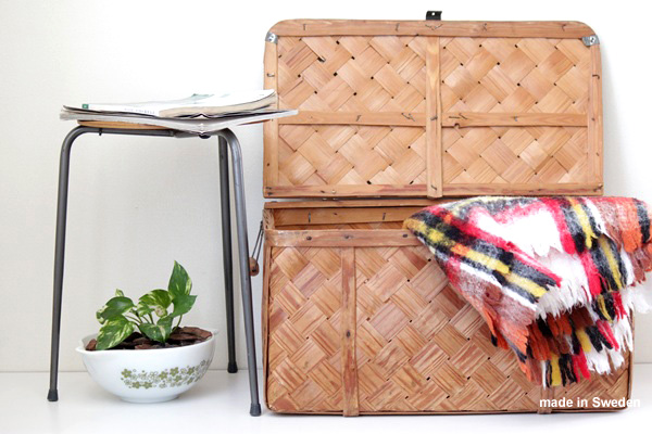 はっきりとした始まりは謎のままですが、スウェーデンの伝統的民芸・民具のひとつで木の皮と枝を編みこんだ バスケット作りは、1800年代初頭には北の地方(ダーラナ以北)で始まっていたと当店の資料に記載があります。ここでご紹介しているバスケットは、この作りから約100年近くまえに作られた古いスポーンコリ、今ではモノを運ぶには不向きですが 生地や雑誌の収納、そして草花を飾ったりしてインテリアとして十分にお楽しみ頂ける素敵な北欧の民芸品です。