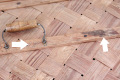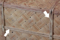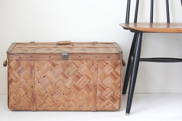 フタ上にサインのような落書き、染みよごれ、裏の木柱に薄いヒビワレ、裏底や側面に擦れ、擦りキズはありますが どれもが見ため・ご利用にも問題ありません。大きなダメージはなく この時代のカゴとして全体的に良いコンディションです。