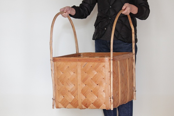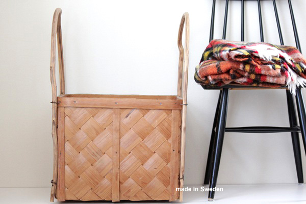 こちらはスウェーデンで1950~60年代頃につくられたと思われるスポーンコリ、松の木の古い収納かごです。天然木のハンドルが付いて、もとは薪やお野菜を入れるためのカゴですが、お気に入りのブランケットを入れたり、ヨガマットなどを入れて そのまま飾っても、素敵なインテリアとしてお楽しみ頂けます。