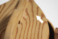 矢印部分、内側底板に製造時レベルのすき間(表への貫通・すき間はありません)、張り合わせ部分の接着剤のあとがあります。多少の擦りキズやあたりキズはありますが、どれも気がつかない程度で全体的には良いコンディションです。