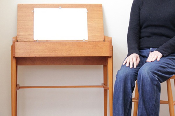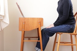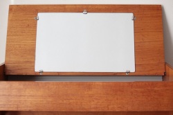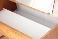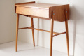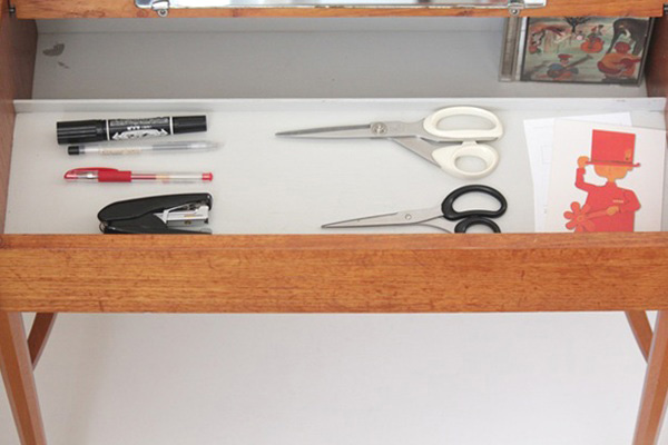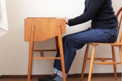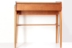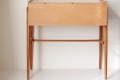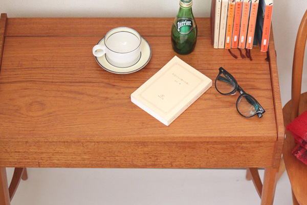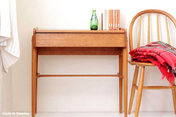 テーブルトップの裏側には鏡がついています。内側の深さある部分と手前の浅い部分、段差のある白い収納スペースは化粧品や小物入れとしてご利用頂けます。またフタを閉じた状態ではサイドテーブルとして書き物やちょっと一休みのお茶用テーブルとして◎スウェーデンらしいスマートでシンプルなデザインが素敵ですね。