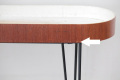 なんでもないデザインのようですが、すごくかっこいい、シンプルでクールなワイヤースタンドは圧迫感がなくて素敵です。 またチークの合板材がグリーンにとても相性よく和洋のどんなお部屋にも馴染みますね。