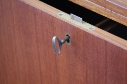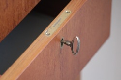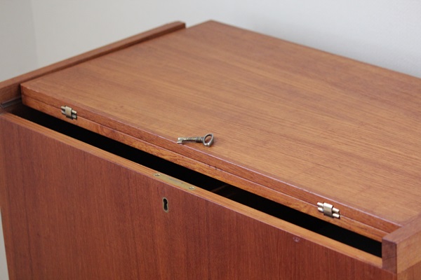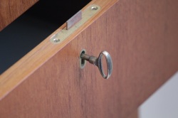 [ 鍵についての注意事項]テーブルトップとサイドの引き出しボックスをロックするための鍵がついていて、鍵として使用することは出来ますが、とても古い鍵ですので 力強く回したり差し込んだりすると、折れたり 壊れる可能性があります。鍵を利用する場合は、まず開けた状態でゆっくり回したり試して頂き、コツをつかんでから鍵を使用して下さい。普段は鍵を使わないことをお薦めします。