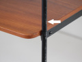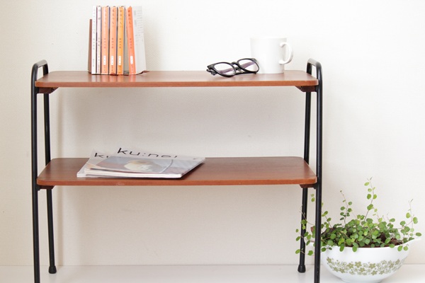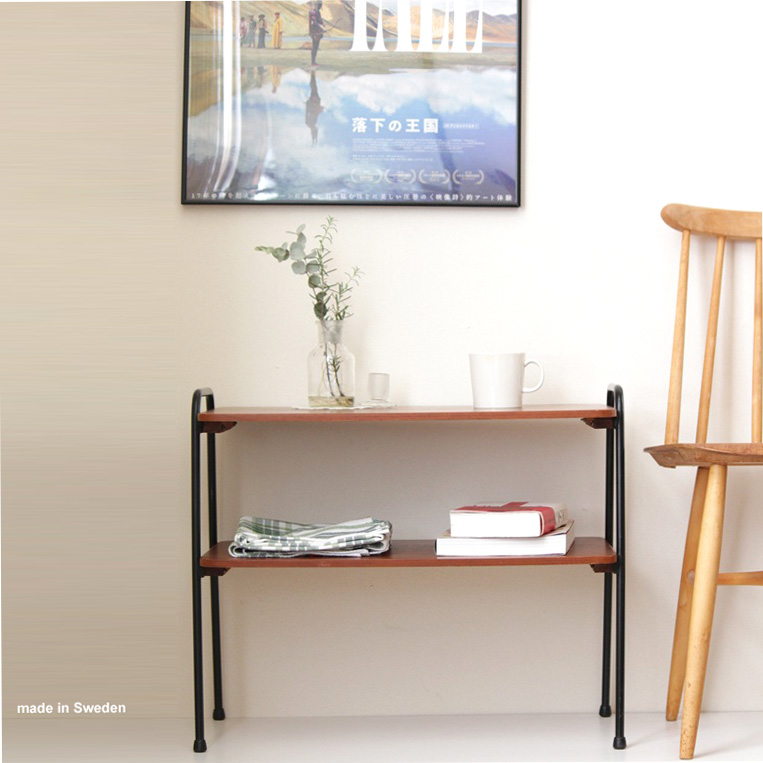 黒のスチールフレームと綺麗なチーク材の棚板の組み合わせは スウェーデンらしくシンプルなデザインながら存在感がありインテリアとして引き締まります。