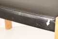 矢印部分、光にかざすと座面にモノを置いた跡がスジ状に残っていたり、座面ふち・側面に小さな擦れ、脚の擦りキズ、アタリキズ、裏側にシミ汚れなどありますが どれもが気になるほどではなく、見ため・ご利用に問題ありません。全体的には大きなダメージなどなく安心してご利用頂ける良いコンディションです。