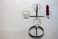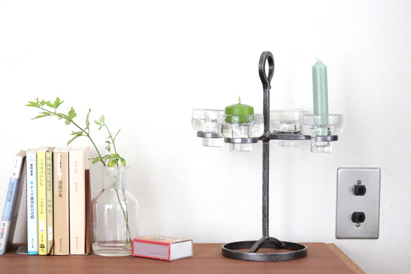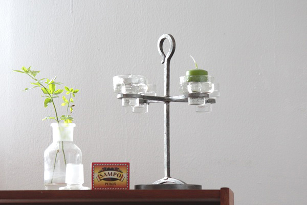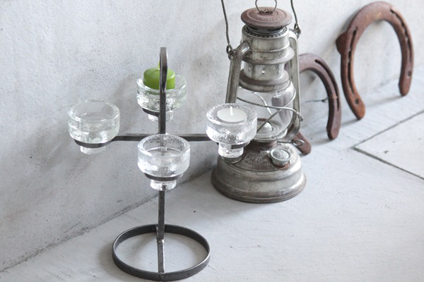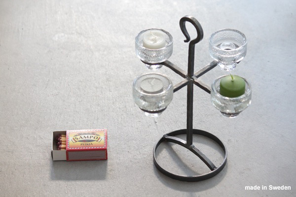 スウェーデンで作られたアイアンの本体にガラスのホルダーをのせる燭台です。アイアンは4つのアームがついて、それぞれにガラスホルダーにティーキャンドルやロウソクをのせることが出来ます。