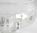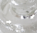 ①の矢印部分、ガラスのホルダーの一つに削れたような小さなカケがあります。その他の矢印部分は気泡やプレスの際に出来るガラスのヒズミや凹凸、スジで不良不具合ではありません。アイアンに多少擦れなどありますが 古い燭台として雰囲気もあり、全体的にはとても良いコンディションです。