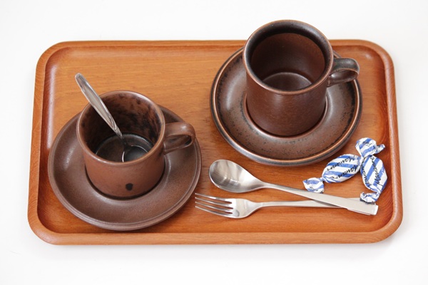 こちらはスウェーデンのKarl Holmbergで作られた 肉厚のしっかりとしたチーク材のトレー、横長タイプのMサイズ。カップやグラスを運ぶのはもちろんのこと花器や置物、ステーショナリー類を並べても素敵です。