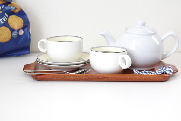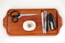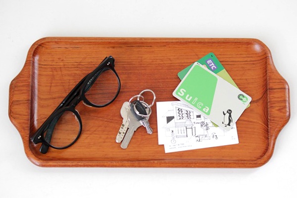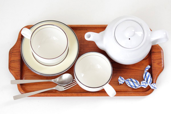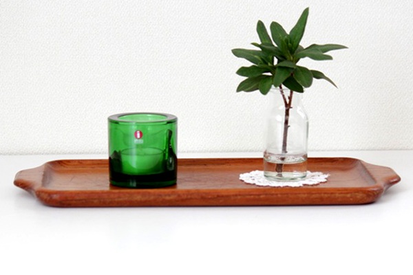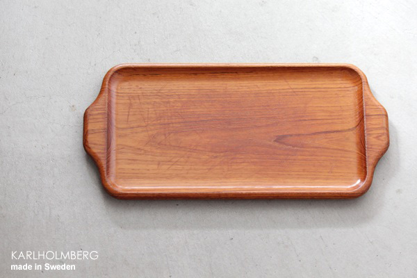 こちらはスウェーデンのKarl Holmbergで作られた 肉厚のしっかりとしたチーク材のトレー、横長タイプのMSサイズ。カップやグラスを運ぶのはもちろんのこと、花器や置物を並べても素敵です。