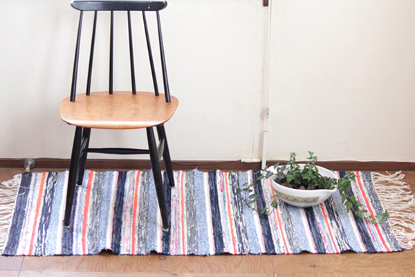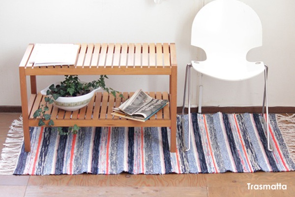 北欧の伝統的裂き織物のマット、Trasmattaトラースマッタと呼ばれています。シーツや洋服、カーテンなど さまざまな使用しなくなった布を裂いて織り直して敷物ラグに仕上げていきます。 キッチンや玄関での使用が一般的ですが お気に入りの家具や椅子の下に敷いても◎