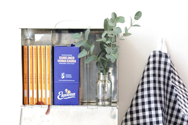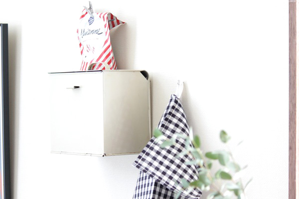 こちらはスウェーデンで作られた、壁掛け用の収納ボックスです。もとは調味料や紙ナプキンなどを収納するためのボックスですが ちょうど文庫本が収まるサイズなので お菓子や小物入れにも◎