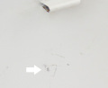 ※壁にかける場合は、壁側にある2つの穴にあわせて、クギやフックを壁に設置して引っ掛けます。